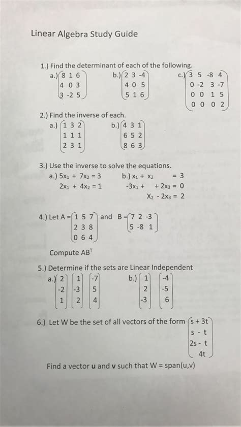 Download linear algebra study guide PDF
